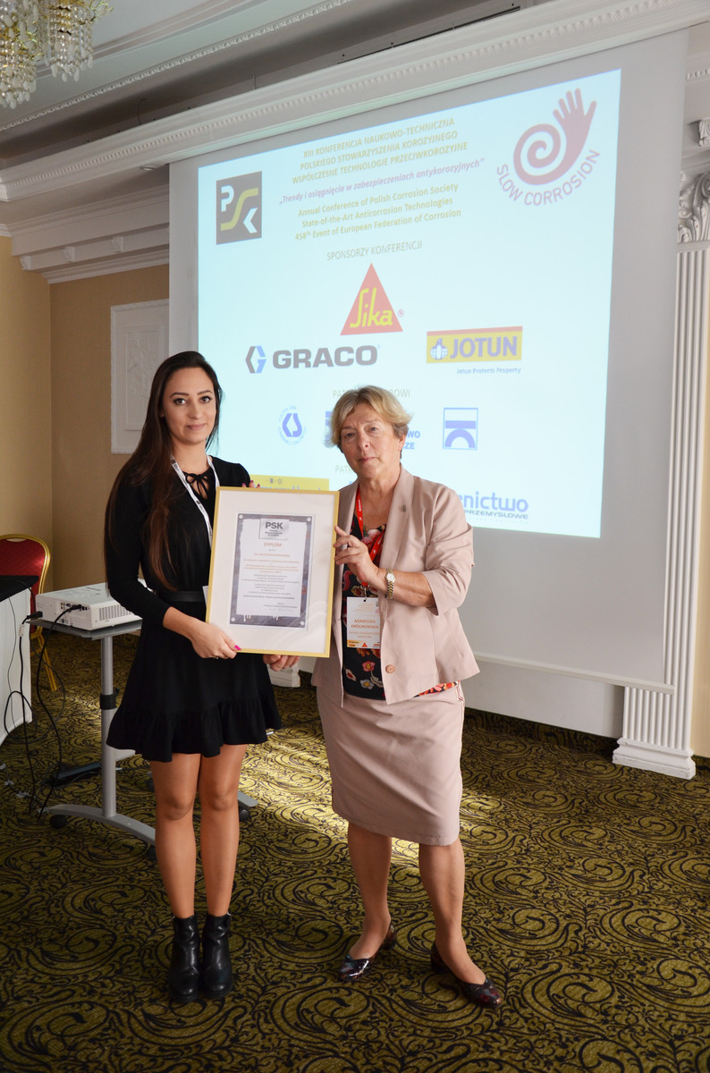 W dniu 21 października 2019 r. mgr inż. Sara Helena Koncewicz, absolwentka kierunku Inżynieria Materiałowa Wydziału Budowy Maszyn i Lotnictwa Politechniki Rzeszowskiej odebrała prestiżową nagrodę Kapituły Polskiego Stowarzyszenia Korozyjnego (PSK).