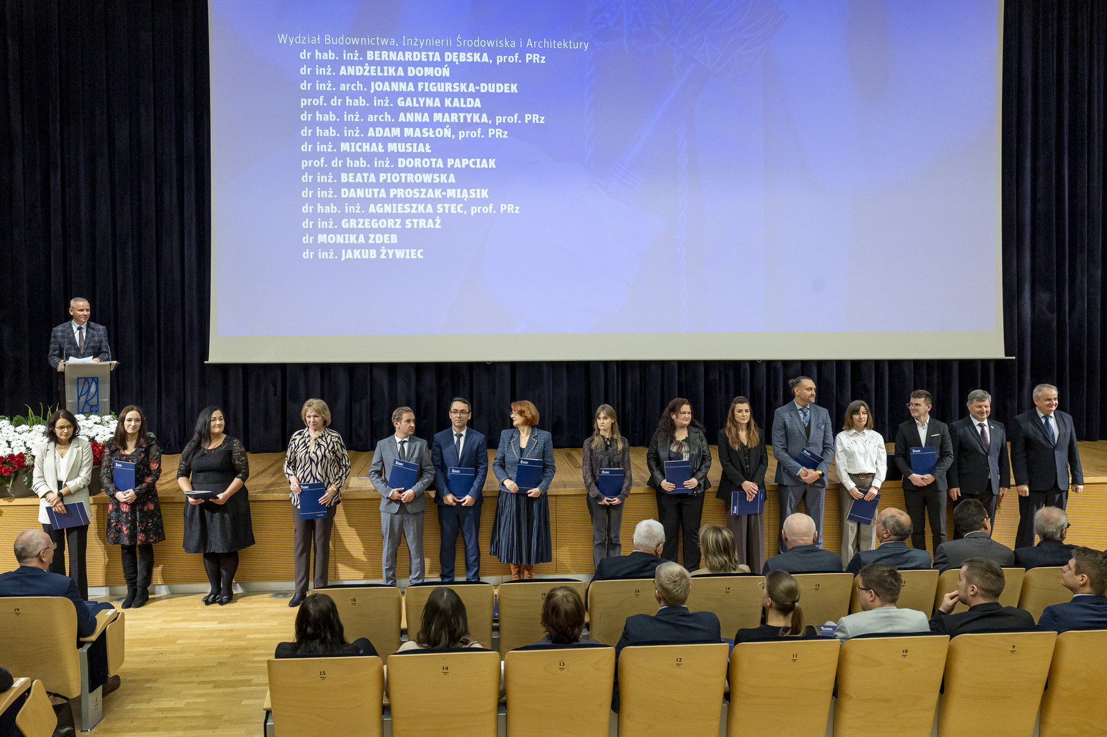 • z Wydziału Budownictwa, Inżynierii Środowiska i Architektury: dr hab. inż. Bernardeta Dębska, prof. PRz, dr inż. Andżelika Domoń, dr inż. arch. Joanna Figurska-Dudek, prof. dr hab. inż. Galyna Kalda, dr hab. inż. arch. Anna Martyka, prof. PRz, dr hab. inż. Adam Masłoń, prof. PRz, dr inż. Michał Musiał, prof. dr hab. inż. Dorota Papciak, dr inż. Beata Piotrowska, dr inż. Danuta Proszak-Miąsik, dr hab. inż. Agnieszka Stec, prof. PRz, dr inż. Grzegorz Straż, dr Monika Zdeb, dr inż. Jakub Żywiec,