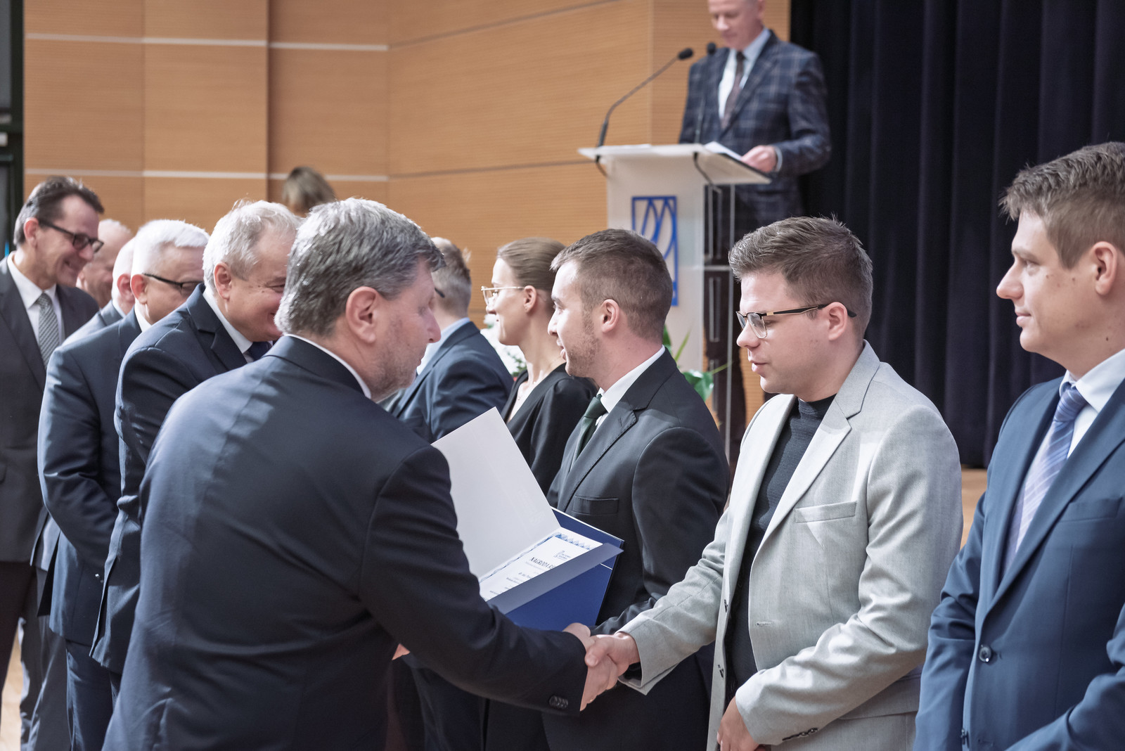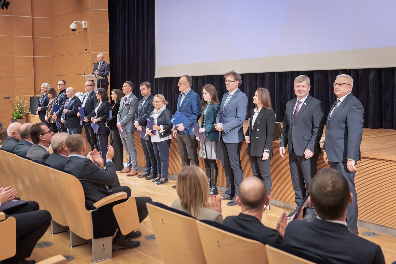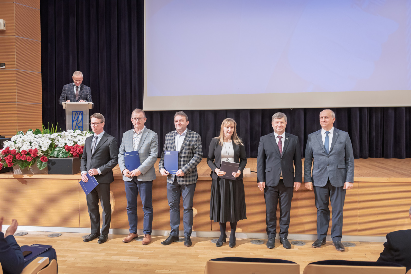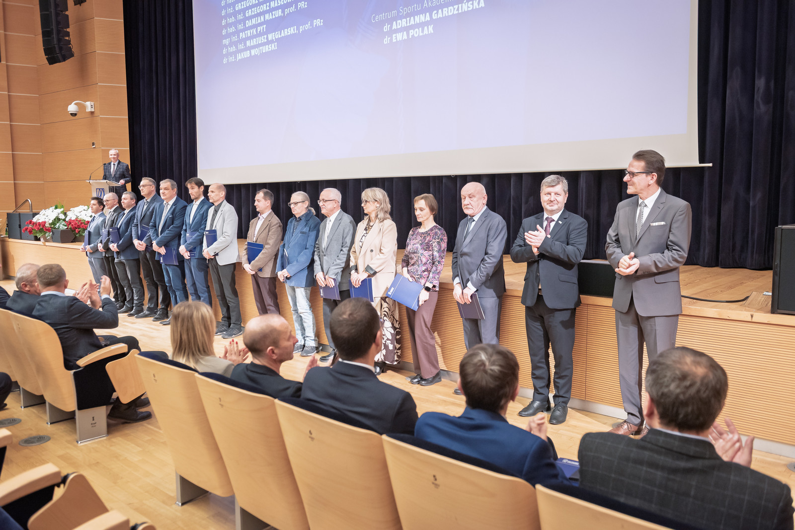 Uroczystość poprowadził prorektor ds. nauki dr hab. inż. Lesław Gniewek, prof. PRz. Dyplomy nagród wręczył rektor prof. dr hab. inż. Piotr Koszelnik. w towarzystwie dziekanów.