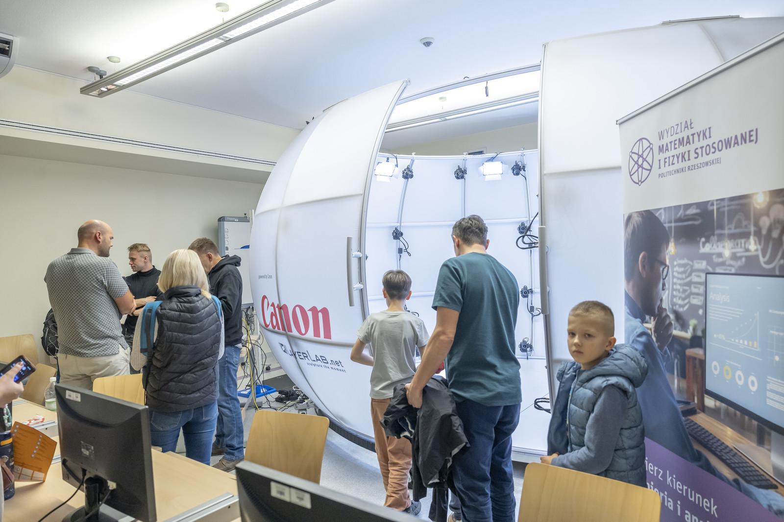 Uczestnicy wydarzenia mogli również zwiedzić laboratorium ze studiem fotogrametrii znajdujące się na Wydziale Matematyki i Fizyki Stosowanej. Studenci Koła Naukowego Inżynierii Medycznej X-med zaprezentowali działanie drukarki 3d. Ogromnym zainteresowaniem cieszyły się widowiskowe pokazy fizyczne przygotowane przez pracowników Wydziału oraz studentów Koła Naukowego FOTON.