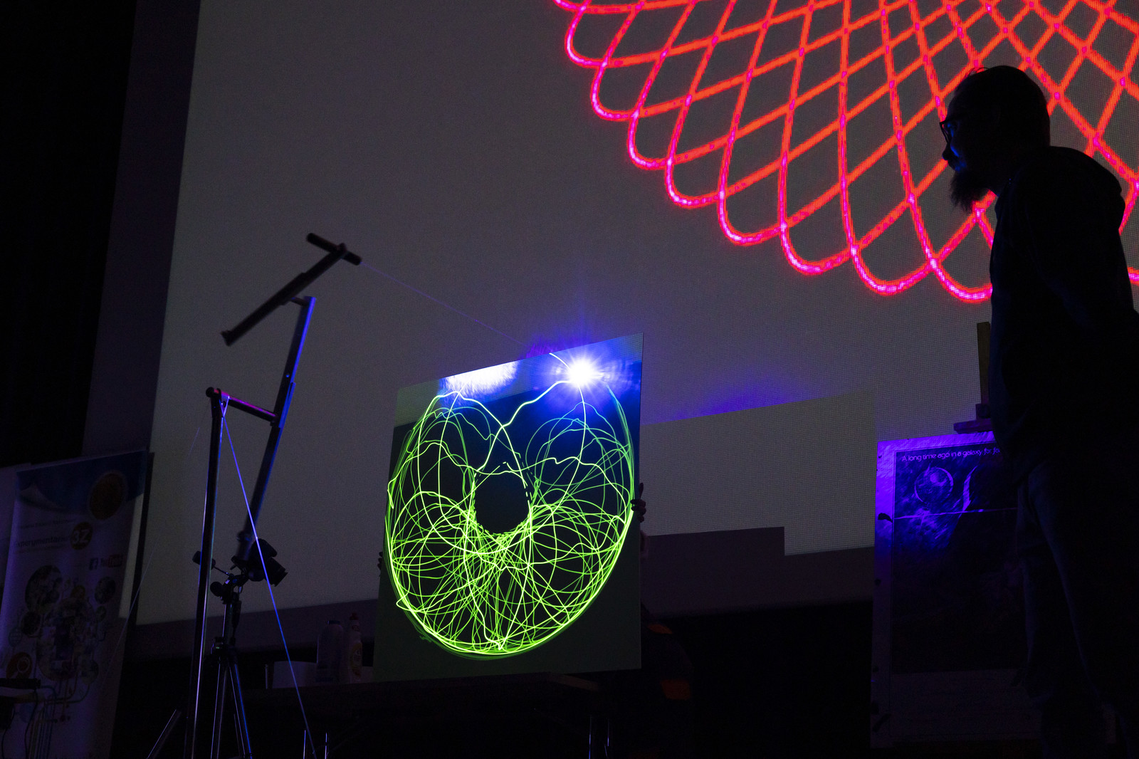 Najbardziej wyczekiwaną atrakcją Nocnych Spotkań z Nauką był „Teatr wysokich napięć”. Do tego widowiskowego spektaklu wykorzystany został jeden z największych w swojej klasie transformatorów Tesli. Kilkumetrowe wyładowania, które w rytm muzyki rozświetlały mrok, wzbudziły zachwyt widowni.