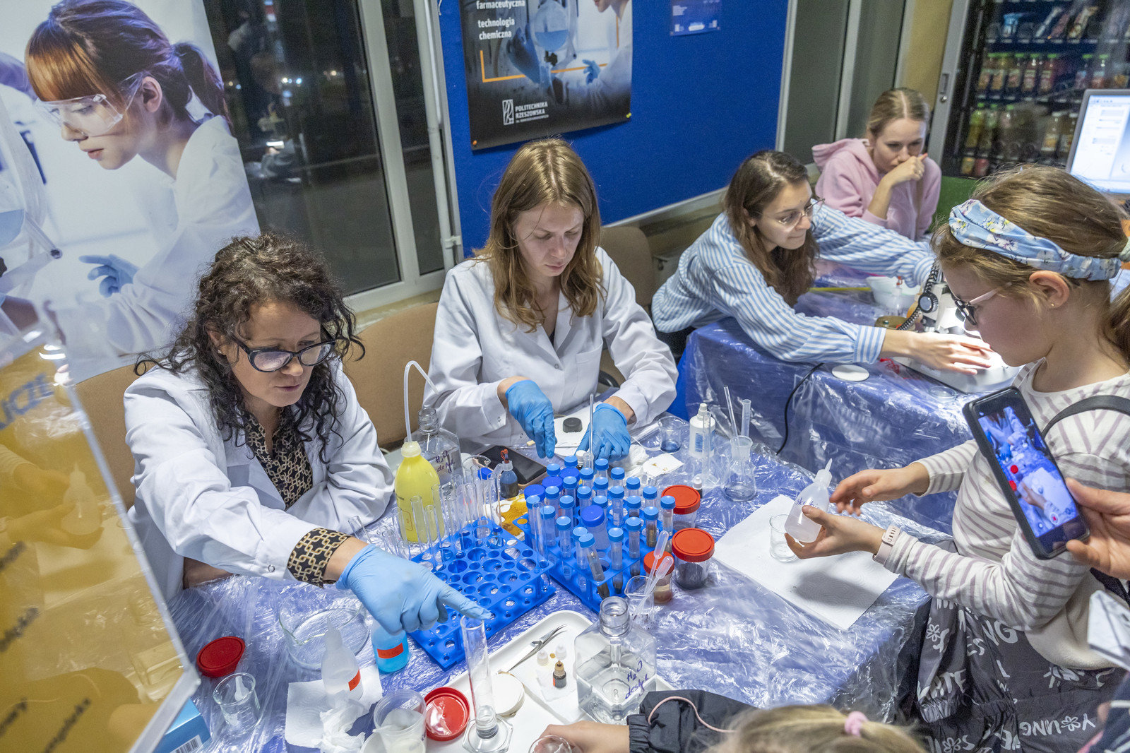Uczestnicy Nocnych Spotkań z Nauką mieli możliwość zwiedzenia wielu laboratoriów poszczególnych wydziałów Politechniki Rzeszowskiej, do których na co dzień mają dostęp tylko studenci i pracownicy. Naukowcy i studenci naszej uczelni opowiadali o badaniach realizowanych w poszczególnych laboratoriach czy też o praktycznym wykorzystaniu nowoczesnych technologii. Zwiedzający mogli uczestniczyć w ciekawych pokazach naukowych i warsztatach poznawczych, a także przeprowadzać interesujące eksperymenty.