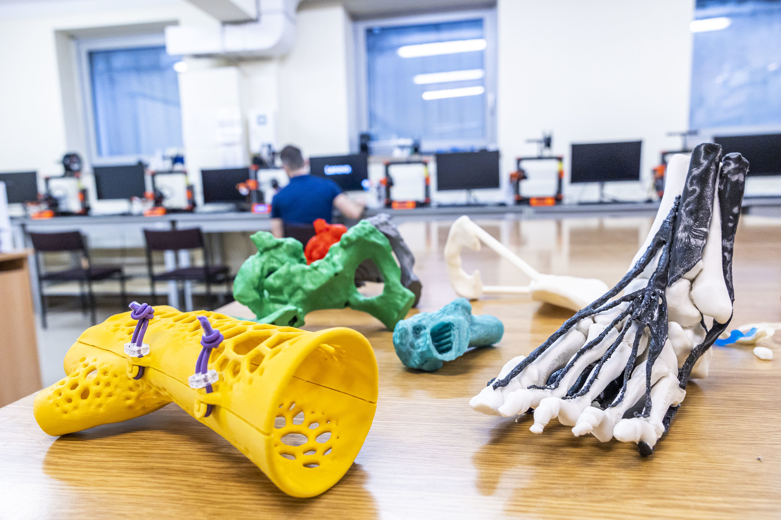 Badania naukowe związane z medycyną zdrowiem i jakością życia wpisują się w najnowsze trendy rozwoju nauki, i jednocześnie należą do obszaru innowacyjnych specjalizacji województwa podkarpackiego w zakresie podniesienia jakości życia. Realizowane w międzyuczelnianych zespołach prace badawcze dają możliwość szybszego powrotu do zdrowia pacjentów, którzy wymagają operacji wynikających z doznanych urazów czy zmian chorobowych, w tym nowotworowych. Istotnym elementem omawianych procesów inżynierii medycznej jest diagnostyka obrazowa i analiza danych medycznych pozwalająca na wykonywanie trójwymiarowych modeli numerycznych będących podstawą do wytwarzania modeli metodą druku 3D. Proces obróbki i analizy danych determinuje dokładność geometryczną oraz lokalizację zmian chorobowych i urazowych, dodatkowo pozwala na odpowiednią separację tkanek miękkich, twardych czy zmian patologicznych w celu wytworzenia modelu wizualnego i fizycznego.